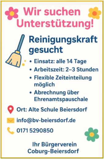 Seit kurzem gibt es den „Förderverein der evangelischen Kindertagesstätte Beiersdorf e.V.“. Dieser will die Kita unterstützen, wenn durch „gewisse Extras“ der Alltag der Kinder bereichert werden soll, dies aber ohne fremde Hilfe nicht zu bewerkstelligen ist. Mitgliedsanträge (20 € Jahresbeitrag) nimmt die Kita gerne entgegen. Bei Fragen oder dem Wunsch nach weiteren Informationen ist der Verein per Mail erreichbar unter FoerdervereinKitaBeiersdorf@gmx.de.